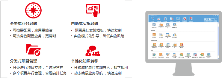 U8+可以為您提供簡(jiǎn)單適用、快速見效、低成本的實(shí)施工具,全面提升實(shí)施效能。