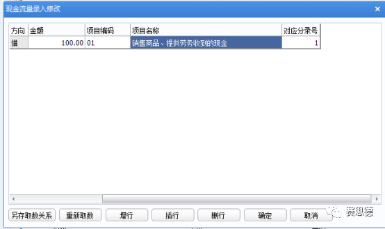 (2)做憑證的時(shí)候涉及到現(xiàn)金流量科目,保存時(shí)會(huì)彈出現(xiàn)金流量錄入的窗口,在這里輸入項(xiàng)目,點(diǎn)確定。