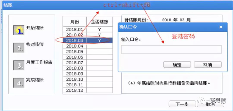 (1)先挨個(gè)月反結(jié)賬,在結(jié)賬界面按Ctrl+shift+F6